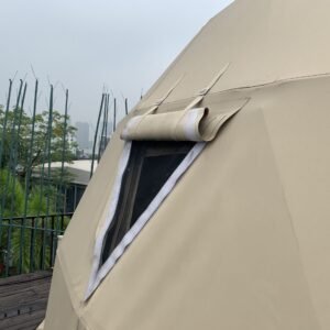 Las cortinas están hechas a medida para ajustarse perfectamente a la estructura de tu domo, ofreciendo privacidad cuando lo necesites y control de la luz natural durante el día. Fabricadas con materiales duraderos y resistentes al desgaste, estas cortinas no solo mejoran el confort interior, sino que también añaden un toque decorativo que complementa el diseño interior de tu espacio.